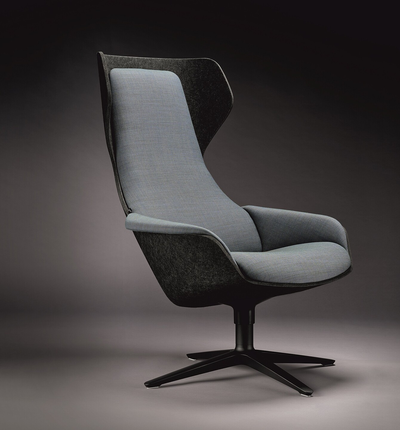 Ein Beispiel hierfür ist das PET-Filz, das bei verschiedenen Produkten wie dem Lounge-Sessel se:lounge, dem Vierfußstuhl se:mood oder dem Schreibtisch se:desk home zur Anwendung kommt. Das von Sedus eingesetzte PET-Filz besteht aus Polyesterfasern (PES), also Synthesefasern aus Kunstharz, und aus recycelten Bicomponentenfasern, sogenannten BIKO-Fasern. Aus Gründen der Stabilität liegt der Anteil von BIKO-Fasern aktuell bei 37 %, dieser Wert wird aber stetig erhöht. Die BIKO-Fasern können wiederum einen maximalen Anteil von 60 % sogenannter „Bottle Flakes“ enthalten, die beim PET-Filz von Sedus zu 100 % aus europäischen Regionen stammen. Das PET-Filz ist ein nachhaltiger Werkstoff, das zu 100 % recyclebar ist. Das Formvlies ist außerdem sehr robust, was Produkte aus dem Material besonders langlebig macht. „Neben der Verwendung von PET-Filz arbeiten wir auch mit dem nachhaltigen Werkstoff Recyclat,“ sagt Kargruber. „Recyclat wird ebenfalls durch den Recycling-Prozess gewonnen. Wir verwenden es bis zu 50 % und mehr bei bestimmten Bürostühlen, zum Beispiel beim schwarzen Modell des se:mood.“
