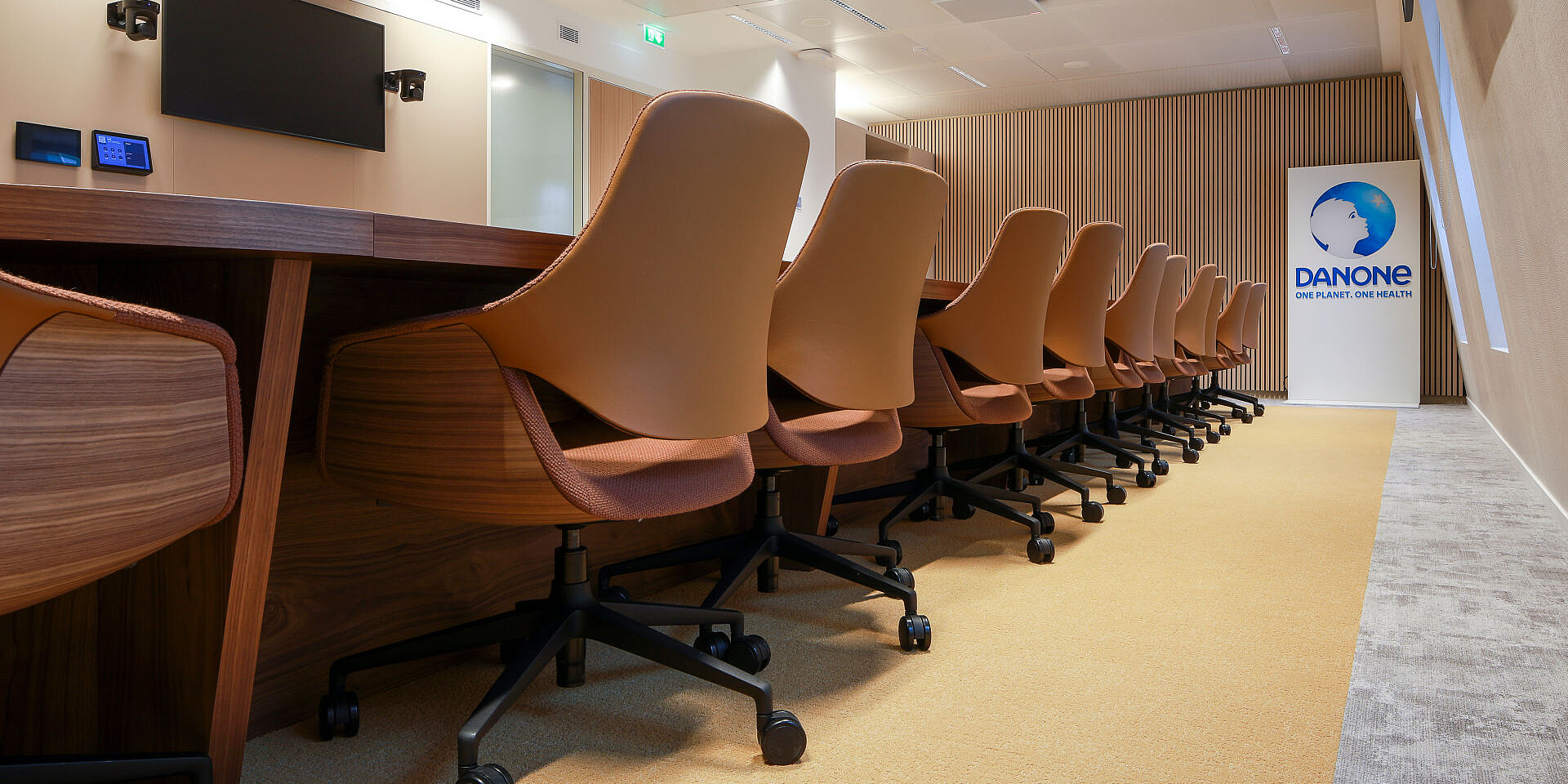 Die zahlreichen Besprechungs- und Seminarräume bilden das kommunikative Rückgrat des neuen Danone Headquarters. Sie sind auf unterschiedliche Formen der Zusammenarbeit ausgelegt – von spontanen Team-Meetings bis hin zu formellen Präsentationen und Workshops. Ausgestattet mit se:flair Drehstühlen sowie se:mission Konferenzstühlen bieten die Räume nicht nur ergonomischen Komfort, sondern auch eine einladende Atmosphäre, die strukturierte Zusammenarbeit ebenso unterstützt wie kreativen Austausch.