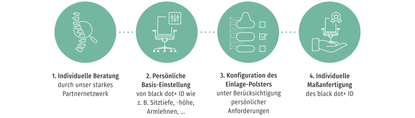 Mit dem black dot+ ID wollen wir Ihnen mehr als nur eine ergonomische Sitzlösung bieten. Das Ziel besteht darin, jedem Menschen entsprechend seinen anatomischen Anforderungen mit einer Maßanfertigung die individuell bestmögliche Sitzlösung zu schaffen.