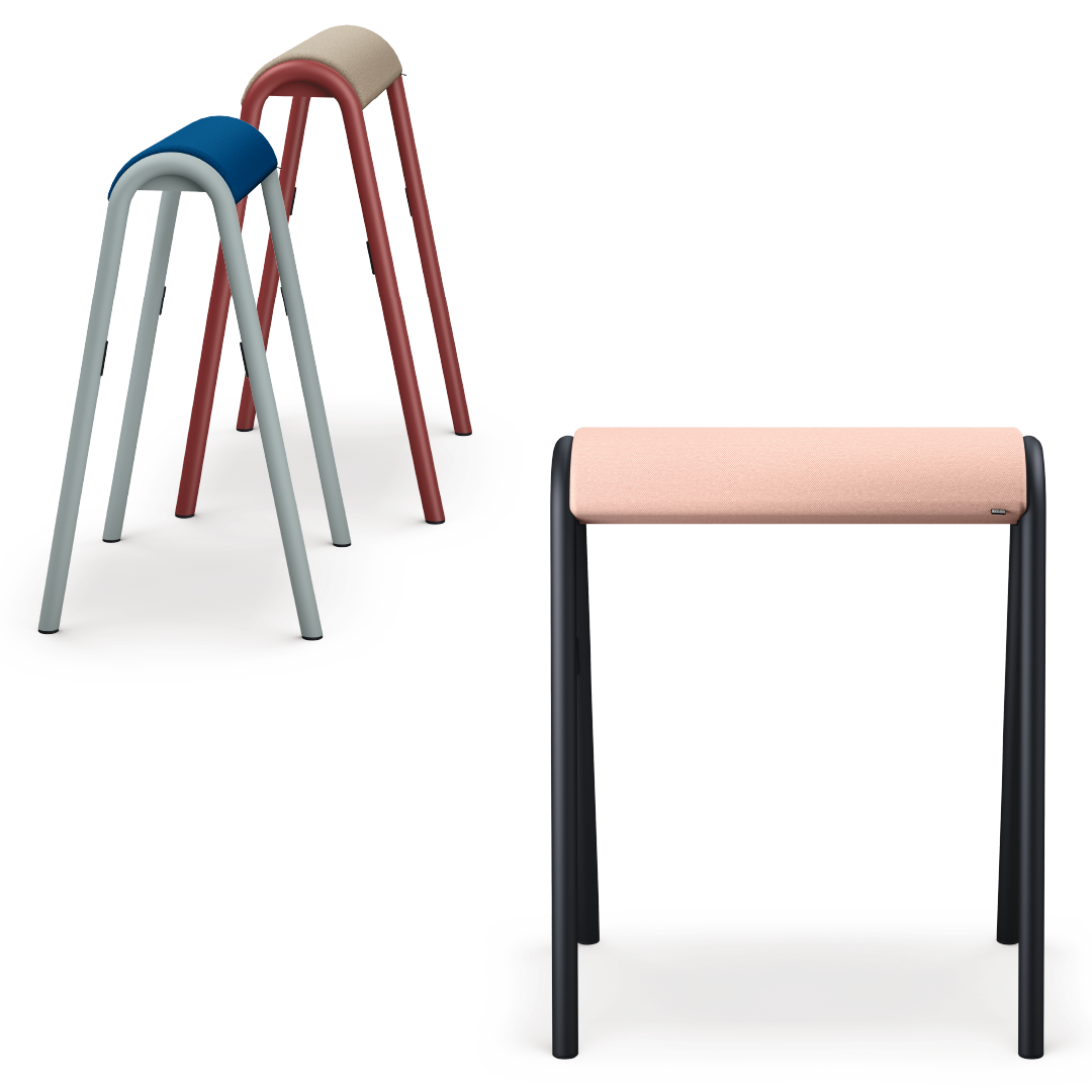 | Gestell | • V-geformtes Stahlgestell • Stahlrohr (Rundrohr): Ø 30 mm, Wandung 2 mm • Unendlich ineinander staffelbar; Staffelung je zusätzlichem Stück + 185 mm • Mit Hilfe eines integrierten Stapelschutzes bis zu max. 3 Stück stapelbar; Stapelung je zusätzlichem Stück + 160 mm |