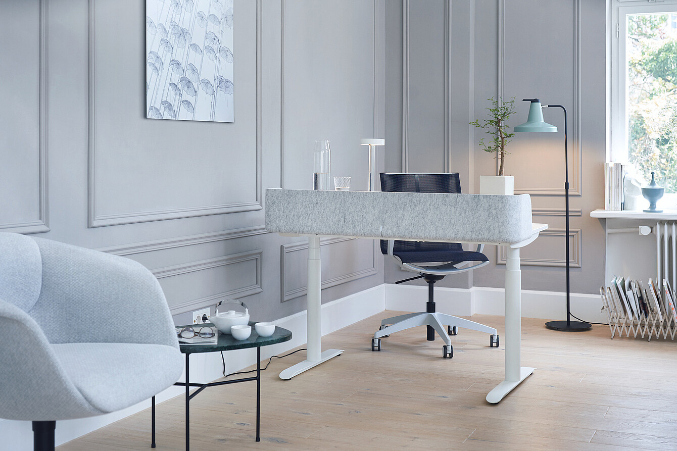 Der elektrisch höhenverstellbare Sitz- und Steharbeitstisch se:desk home ist ein ideales Beispiel für die Verbindung von Ergonomie und Wohnlichkeit. Das Modell wächst praktisch mit seinen Aufgaben, unterstützt Haltungswechsel während des Arbeitsalltages und fügt sich harmonisch ins eigene Zuhause ein. Mit einer Arbeitsfläche von 70 x 120 cm passt er auch in kleine Räume oder Nischen und bietet dennoch ausreichend Platz für größere technische Ausstattungen. Ergänzt wird der Tisch durch ein integriertes Ablageboard, das Nutzern als zusätzliche, zweite Ebene dient, während die abgerundete Tischplatte und der Sichtschutz aus PET-Filz den wohnlichen Charakter unterstreichen.
