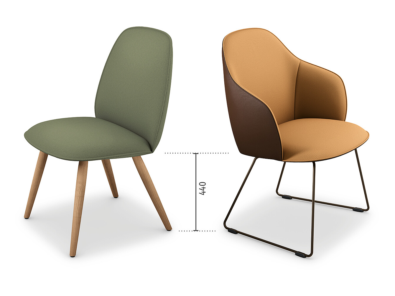 • Fully upholstered shell chair with a seat height of 445 mm and seating angle for sitting upright at the table