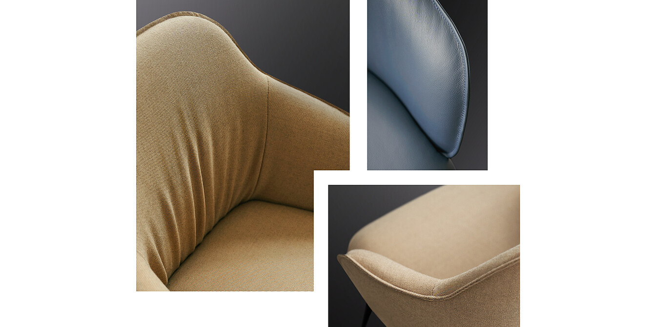 UpholsteryFully upholstered seat shell, strict upholstery appearanceFully upholstered seat shell, casual upholstery appearance - not possible in combination with imitation leather, SILVERTEX®, leather