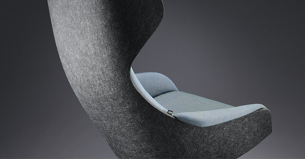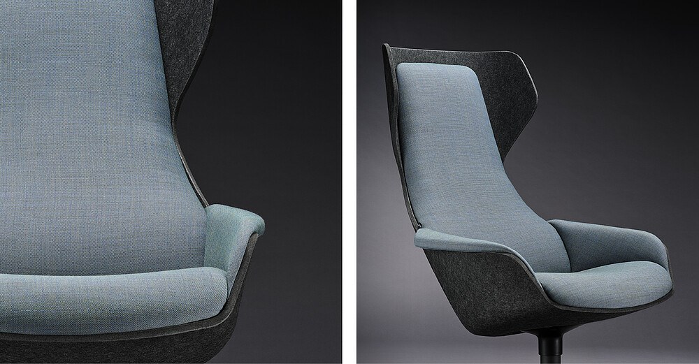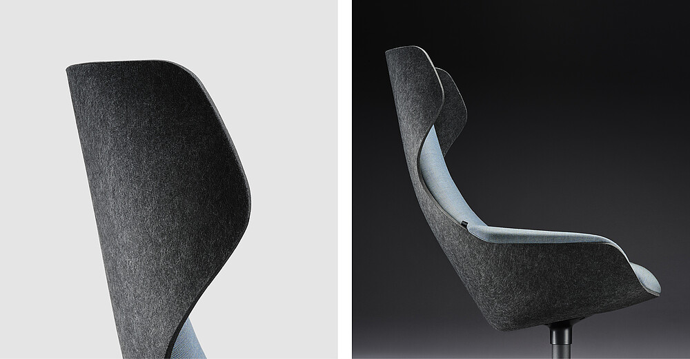 The modern, elegant shape of the wings made of form felt provide protection and privacy.