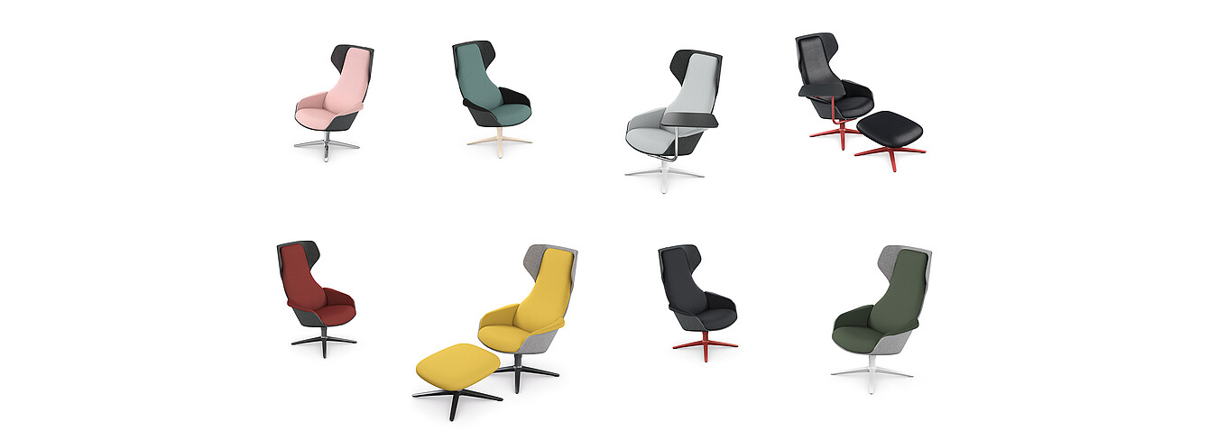 The se:lounge can be individually designed: You can select the armrest wings as well as the seat and back upholstery in different colours to match the seat shell. It is also possible to add a writing tablet or an ottoman as an option.