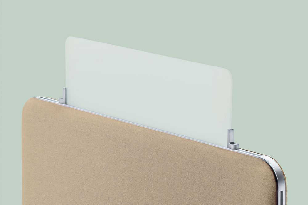 Provides additional shielding and safety clearance when required – the transparent add-on plexiglass element for the se:wall. Robust and tilt resistant, it is integrated into the privacy screen element, keeps particles out and can be easily cleaned, if necessary. The add-on element blends perfectly into the surrounding area and can also be retrofitted.