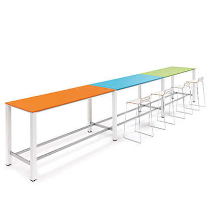 • High desk: It doesn't always have to be the classic desk height – it can also go higher. The high desk is the ideal meeting point in the team work area, in which users can choose whether they want to stand or sit.