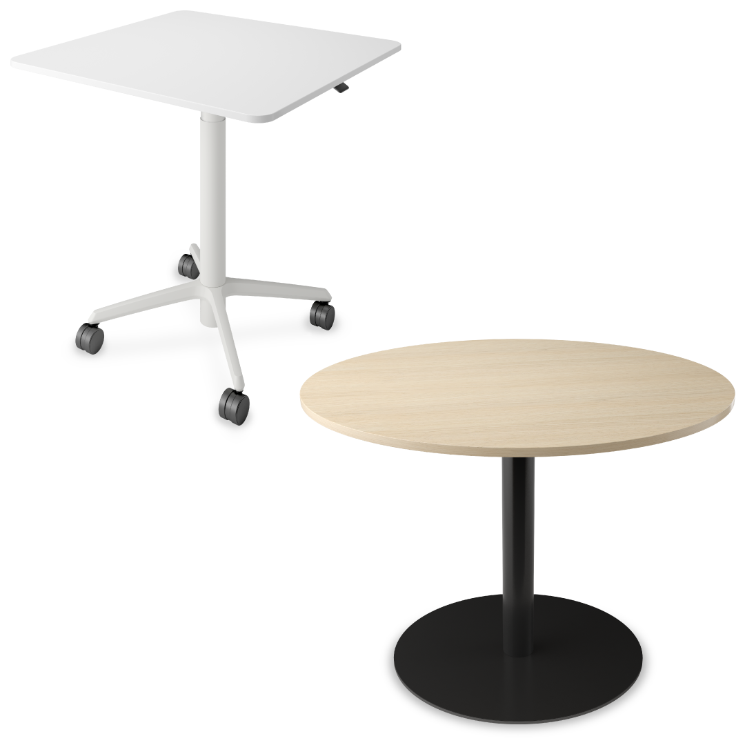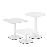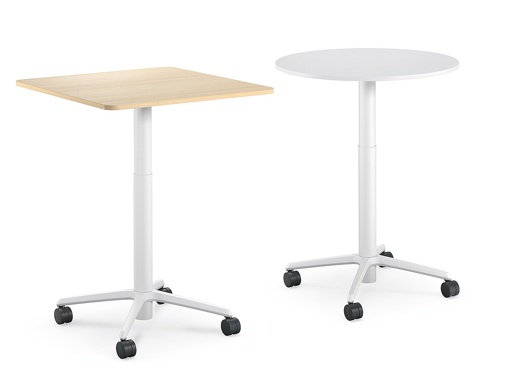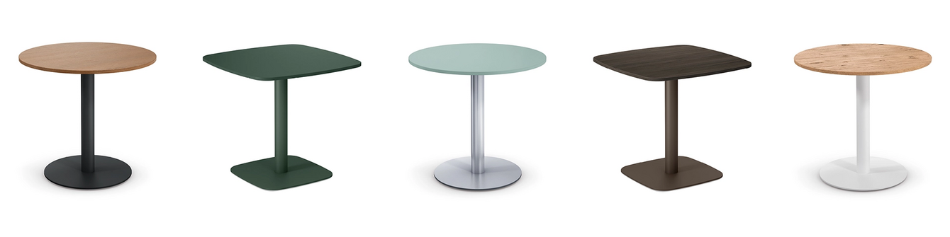 Multifunctional table range in five standard heights and with a large selection of table top shapes