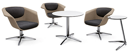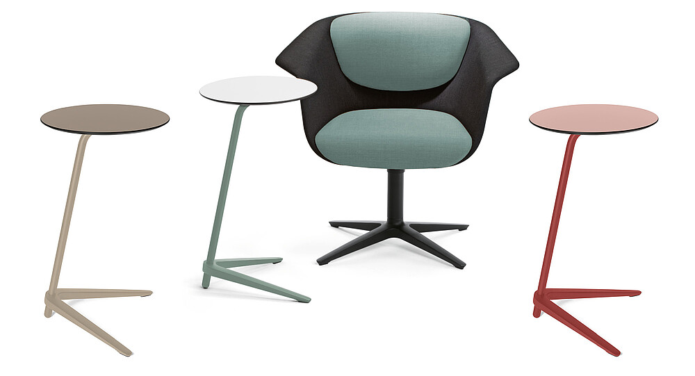 Wherever people get together for a personal chat or to work temporarily, a surface on which to place documents, notebooks or drinks is essential. The Sedus sweetspot lounge table or the smaller sweetspot low table are both available with a round or quadratic table top and can be harmoniously combined with many different kinds of lounge furniture.