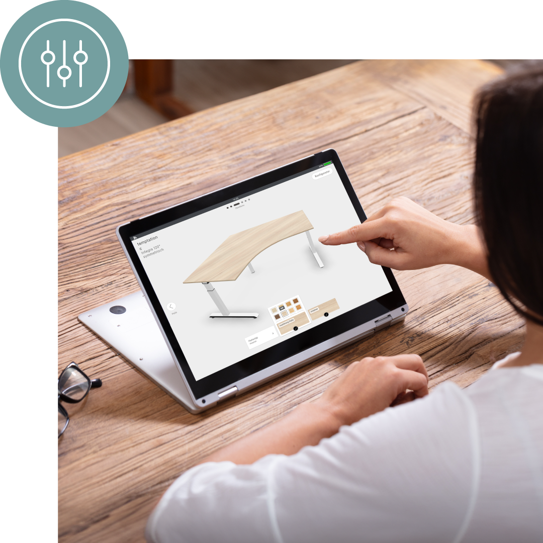 Our configurator guides you step by step through the various options and customisation possibilities of the product. At the end of the configuration process, you can request a non-binding quote, download images and planning data and test the product directly in the room using augmented reality.