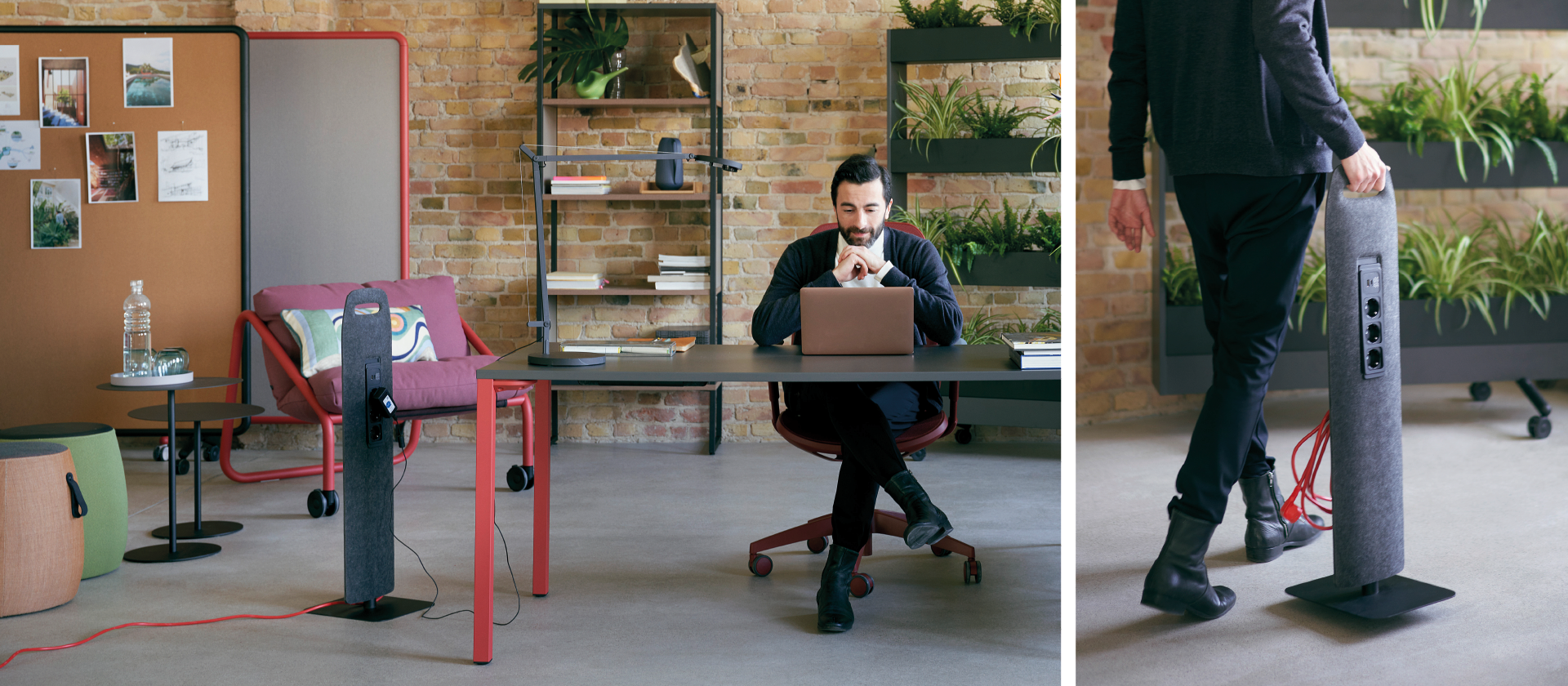 Available in the PET felt colours light grey and anthracite, the mobile power supply blends in with every interior design. Other colours are also available for the base and the cable holder.