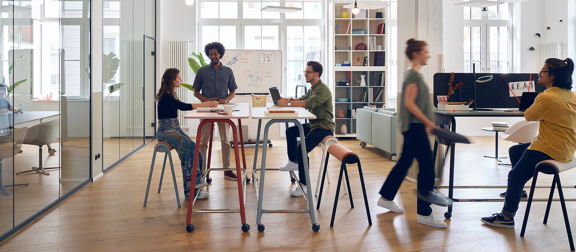The name already reveals that the approach to tasks was inspired by laboratory work. se:lab works in the same way as analysing, researching and problem-solving takes place in a lab. Whether for workshops, where flexible furniture is required, or for spontaneous meetings that benefit from the use of mobile equipment, se:lab offers plenty of possibilities and is always ready for use.