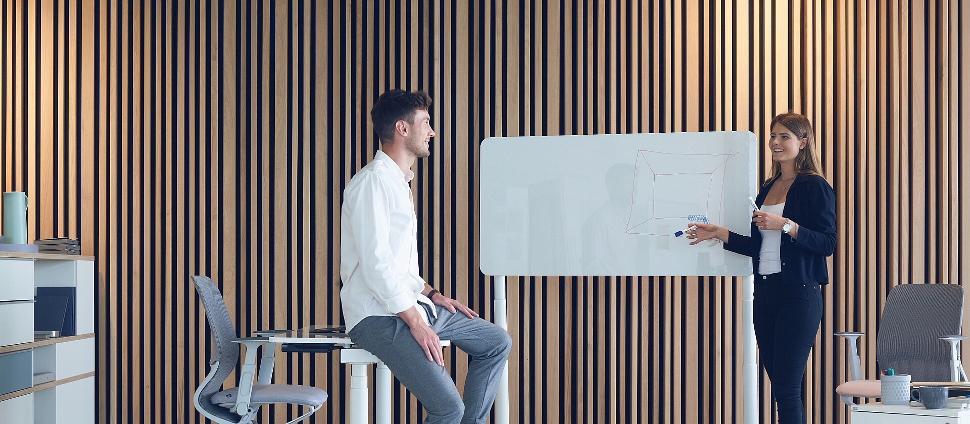 Sitting, standing or whiteboard - with its lightweight construction, castors and battery-powered electric motor, it is intuitive to operate, regardless of location.