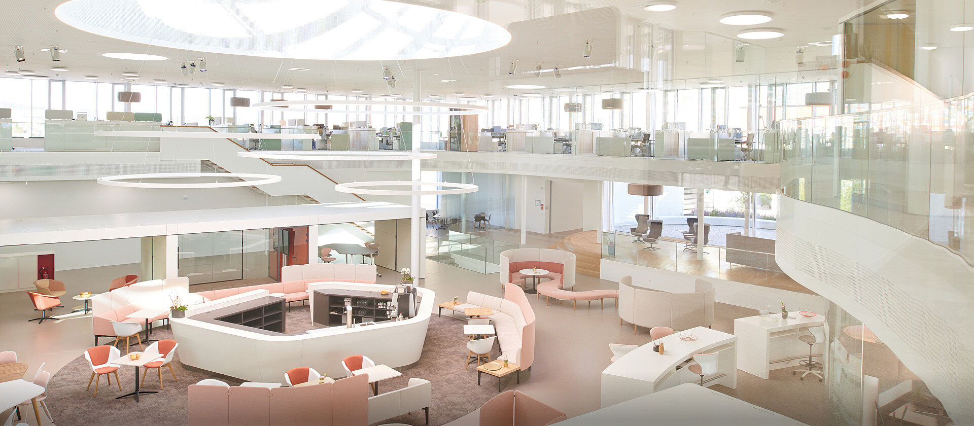 Office buildings that are characterised by open areas also need workplaces that allow for retreats. Quiet zones, like the library, allow for concentrated and undisturbed work. A closed room-in-room solution can also serve as a temporary retreat.