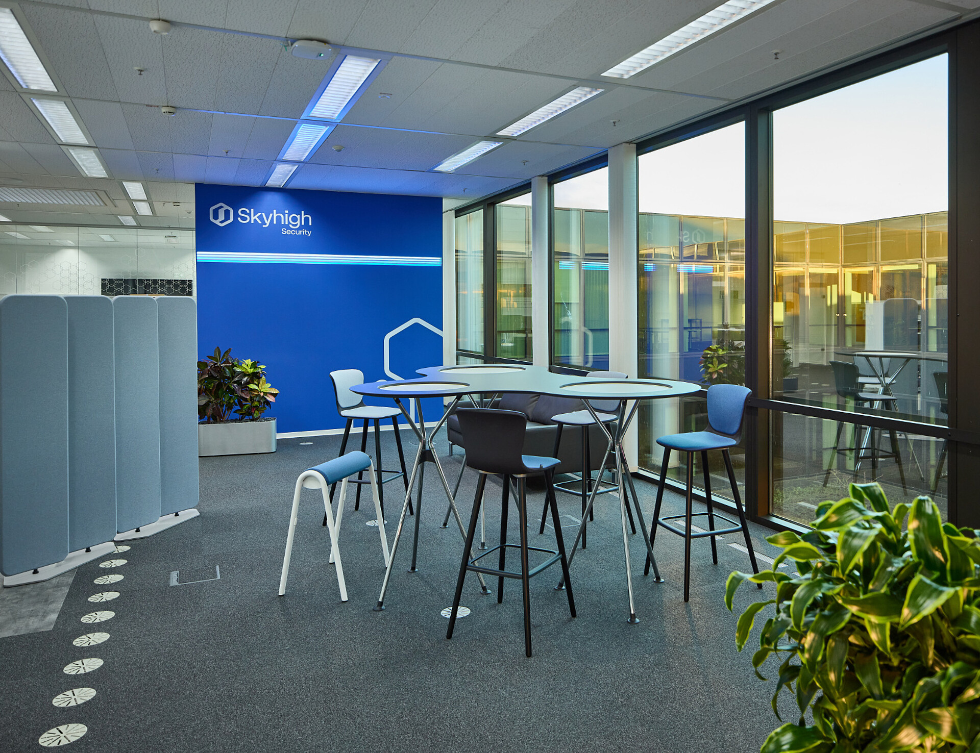 In the newly designed office space at SkyHigh Security in Paderborn, we furnished the Open Space, meeting and lounge areas. On approx. 1000 m2, you will find individual workstations as well as intermediate zones for exchange and rooms for meetings. Different products from the Sedus portfolio are featured, along with the corporate colour blue.