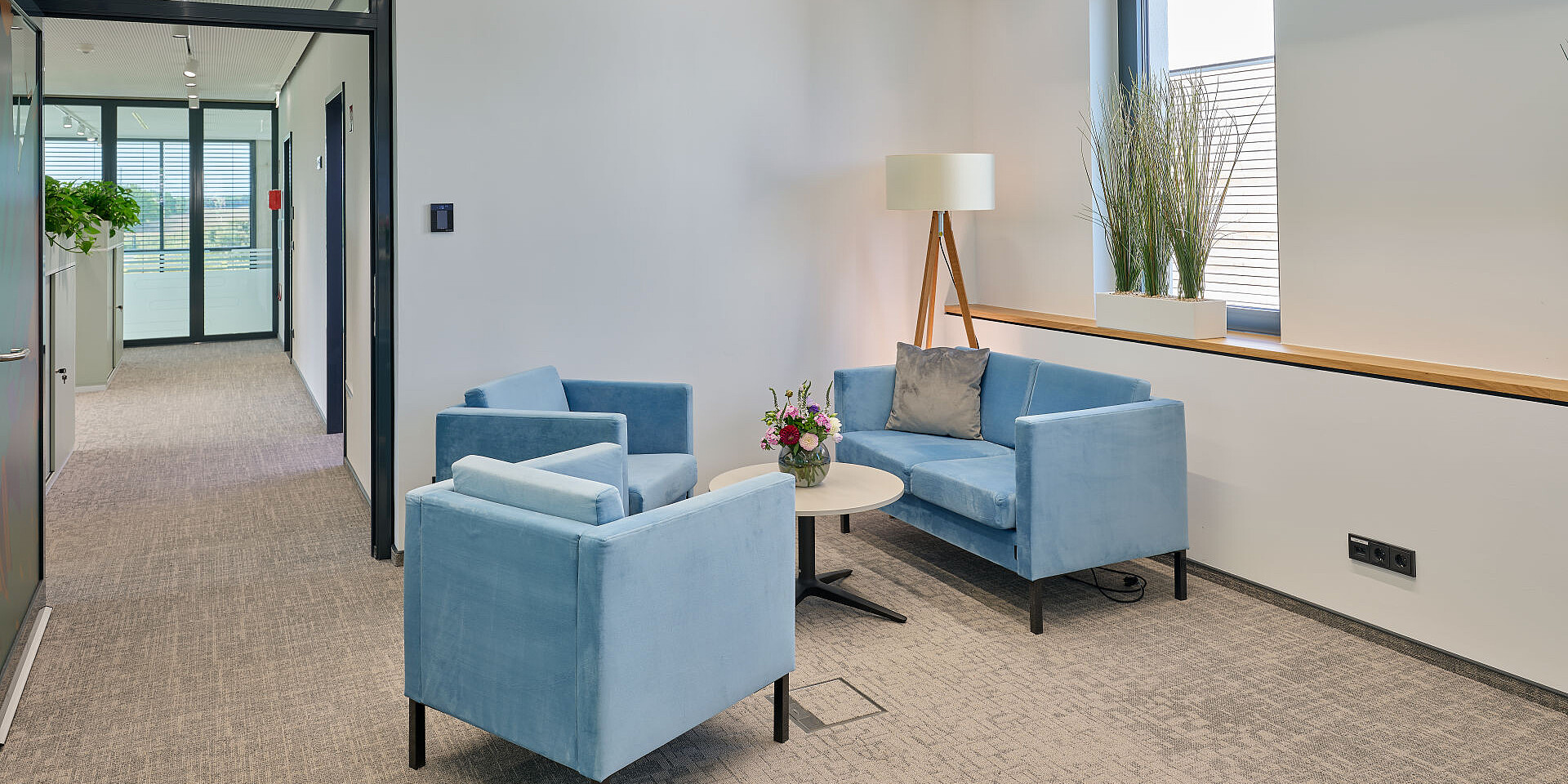 At hubs and intermediate areas, sopha lounge furniture and sweetspot armchairs create intentionally informal lounge areas. These zones encourage spontaneous interaction between employees, provide brief retreat opportunities, and offer alternative workspaces for less formal tasks. At the same time, they give the office areas a homely character and play a key role in creating an inviting atmosphere – an important factor for emotional connection and acceptance of the office as a workspace.