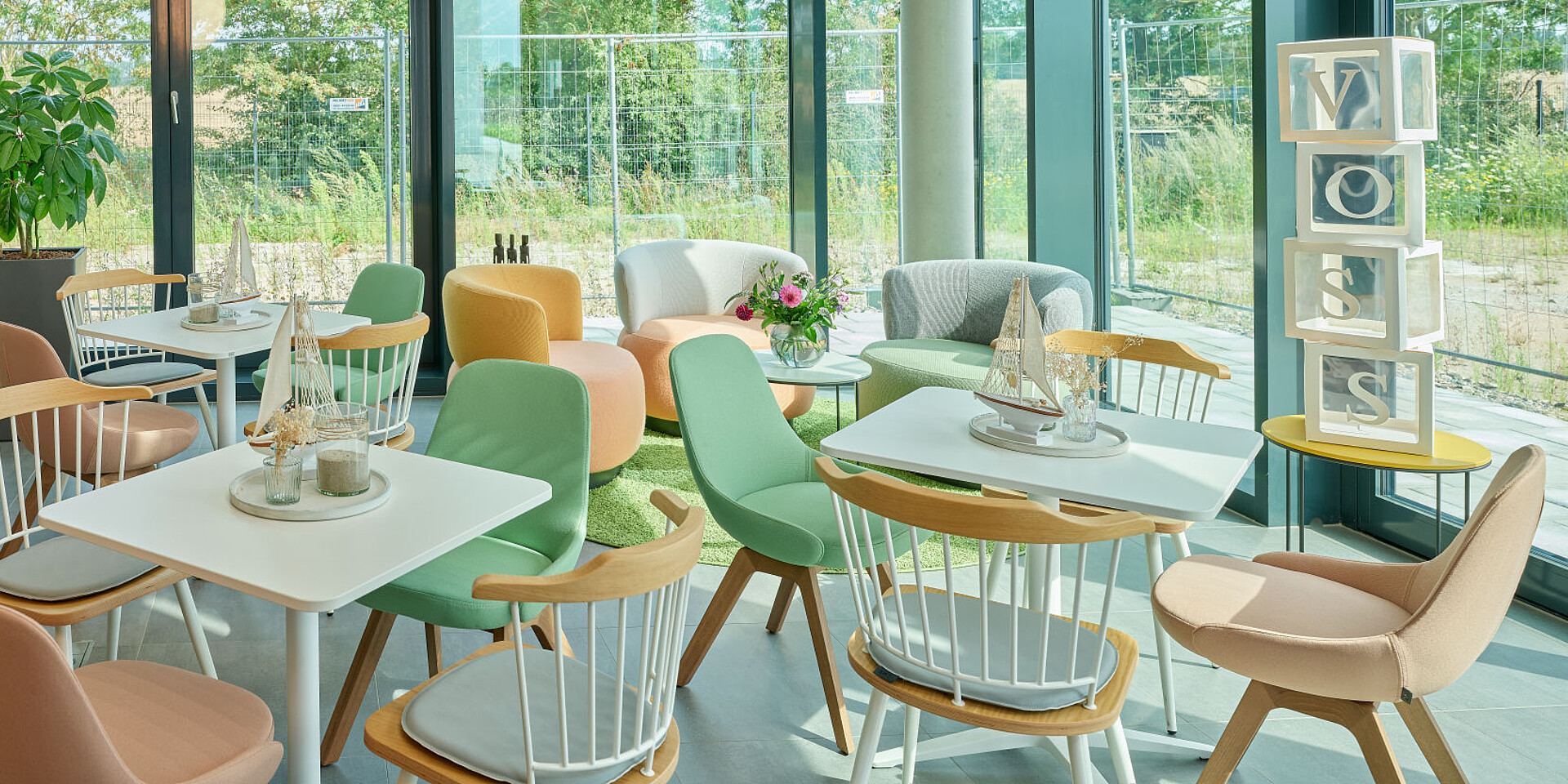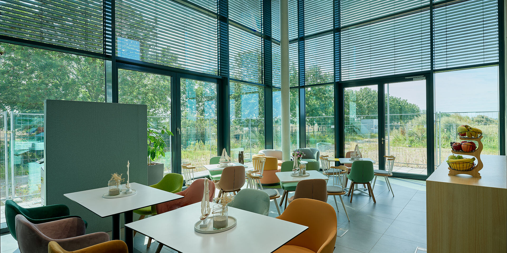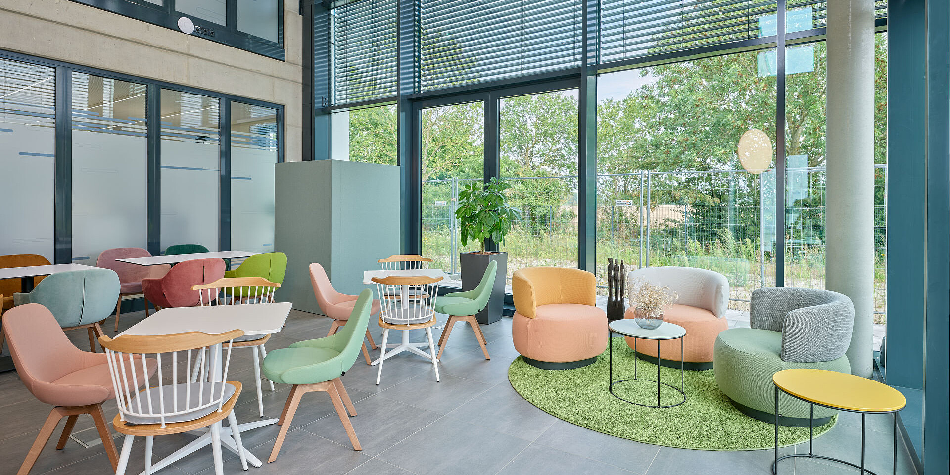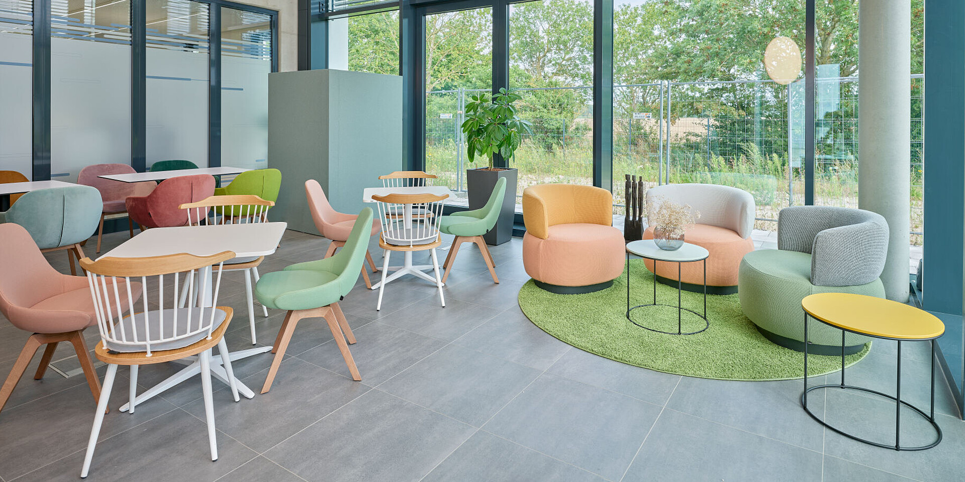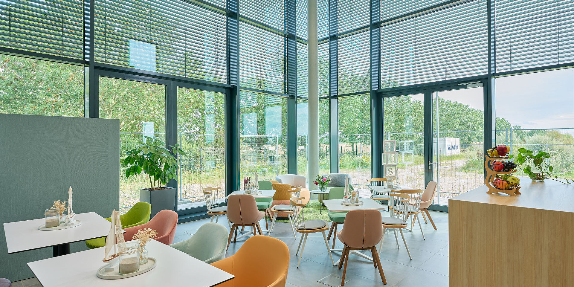 In the Work Café, homely se:living armchairs invite people to relax for a moment, introducing targeted colour accents that blend harmoniously into the overall concept. The furniture supports multifunctional use of the space, serving as a setting for shared breaks, informal interaction or even for focused working as an alternative to the classic desk-based space. In this way, the Work Café takes on a central social function and strengthens both community and a sense of identification with the site.