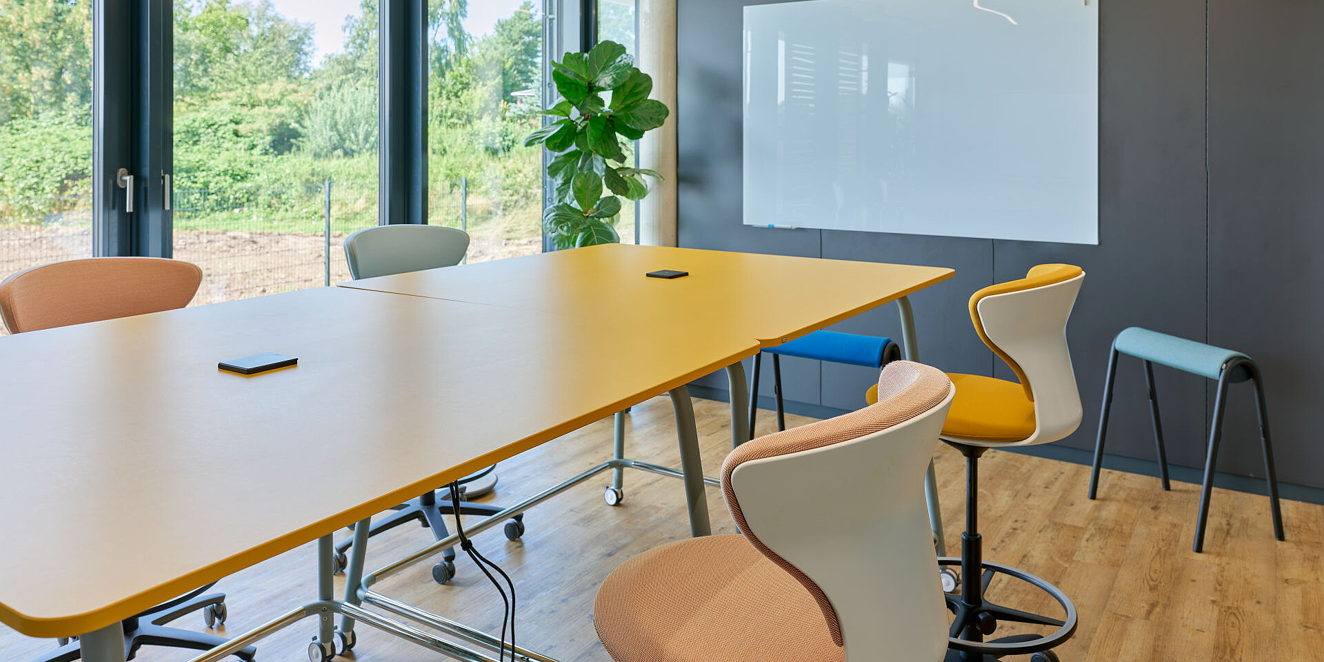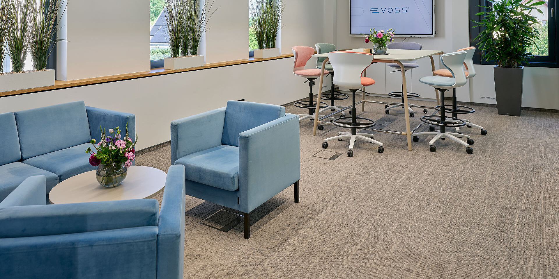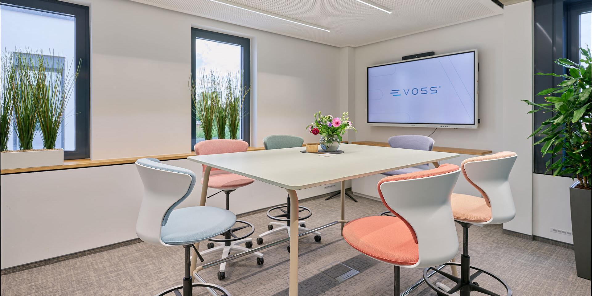 In the meeting and seminar rooms, flexible turn around high desk chairs are used alongside the se:lab high desk and se:lab hopper. The combination enables a variety of use scenarios – from formal meetings and training sessions to interactive workshop formats. This ensures that the rooms remain flexible even as team sizes change or new requirements emerge, thereby contributing to efficient use of space in the long term.
