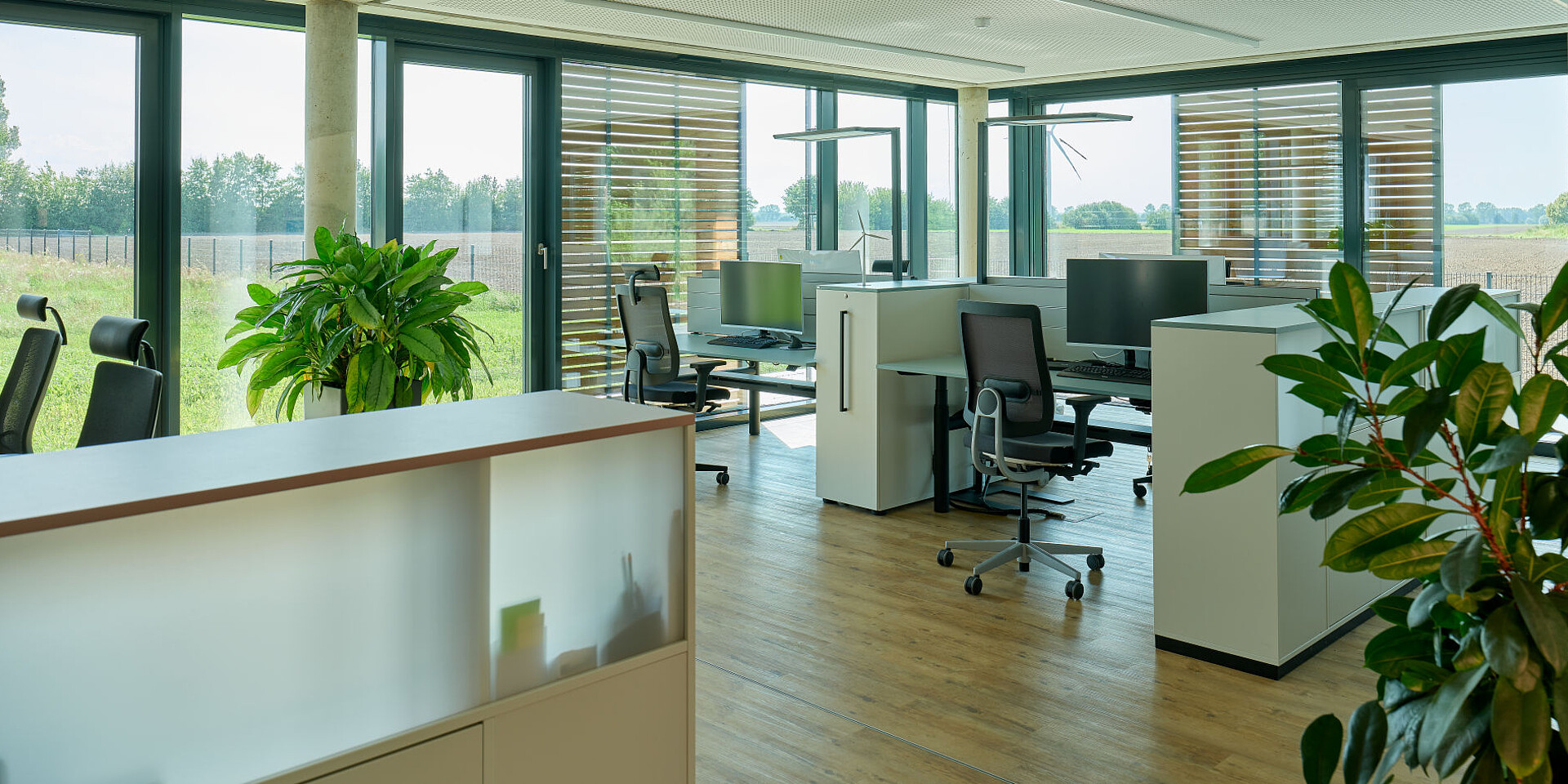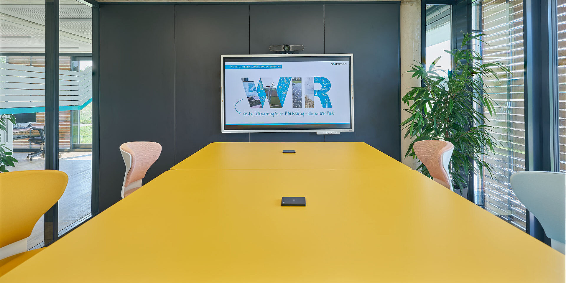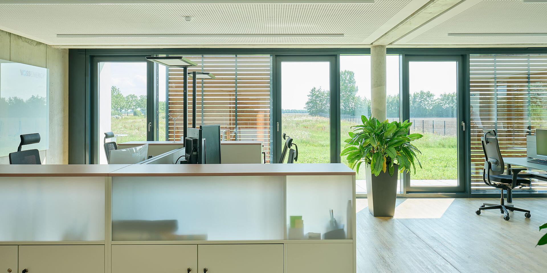 The VOSS Group in Admannshagen near Rostock brings together several specialist companies under one roof. With different business models, ways of working, and cultures, the shared site places specific demands on organisation and the way space is structured. Two of these companies are VOSS GmbH, which provides the legal, financial, and organisational foundations for implementing and operating large scale sustainable projects, and VOSS Energy GmbH, which designs and builds renewable energy systems, develops the associated infrastructure, and continues to manage these systems as part of ongoing operations. Sedus was responsible for outfitting for both companies, creating an integrated office concept designed for hybrid working approaches.