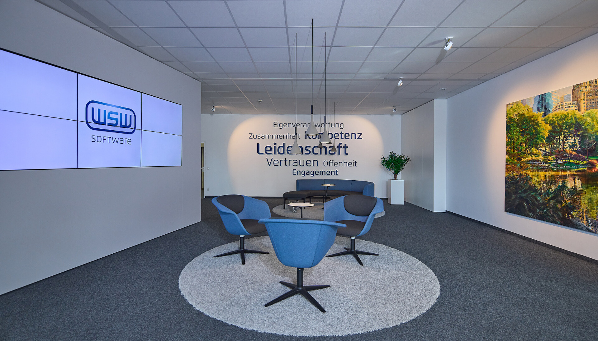 WSW Software is a company that implements IT solutions and is located just to the south of Munich. In the completely revamped building, we have designed and furnished rooms and work areas to meet the needs of our clients. There are retreat areas, meeting spaces as well as large conference rooms and small meeting corners – all in colours that match the Corporate Identity.
