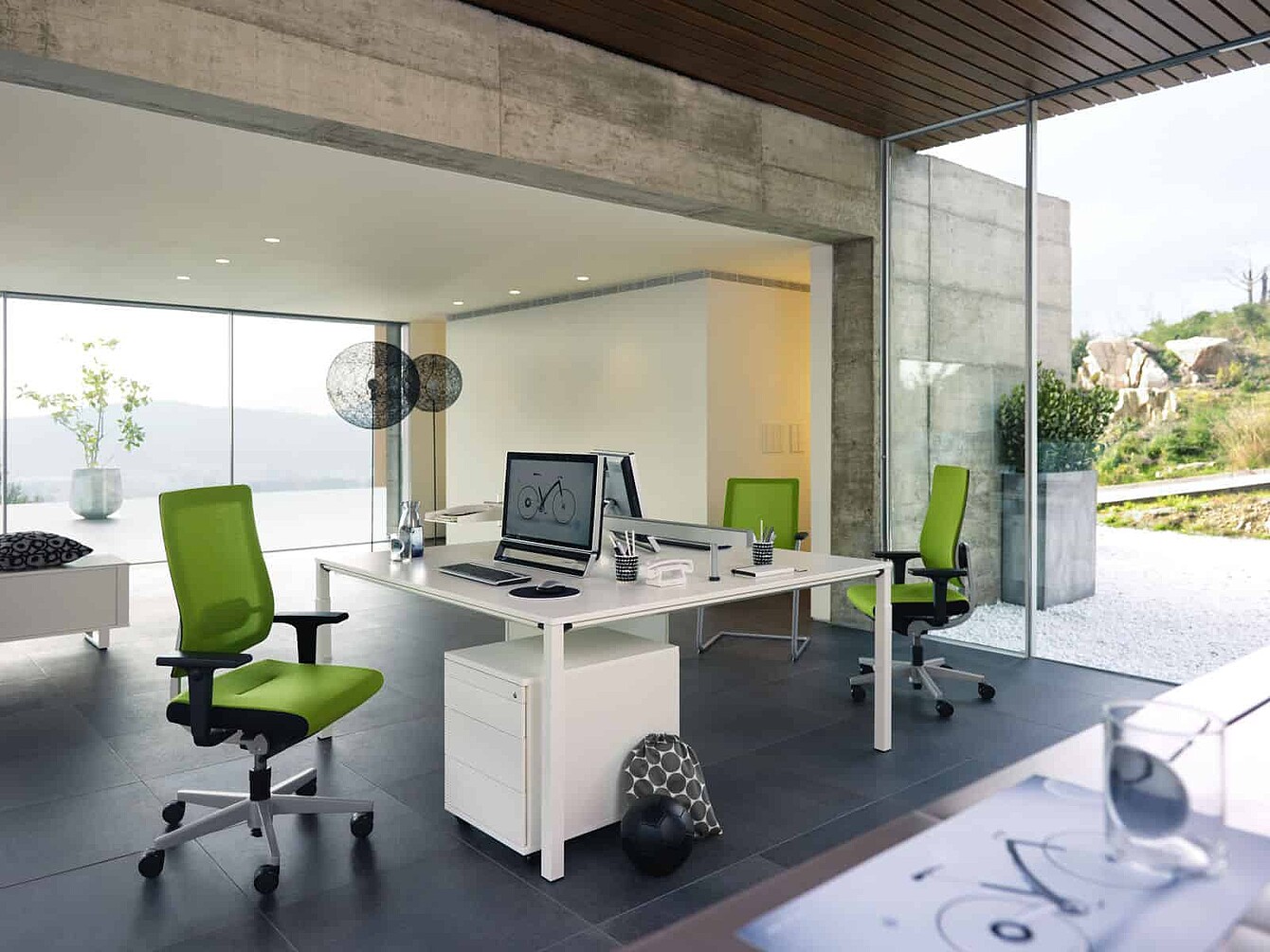 Numerous other equipment options allow a free choice, entirely according to the preferences and needs of the user - also with regard to the membrane and fabric colours. In all cases, with mesh or with upholstery in the backrest, the ‘black dot’ family is classic, timeless seating furniture with outstanding ergonomic properties.