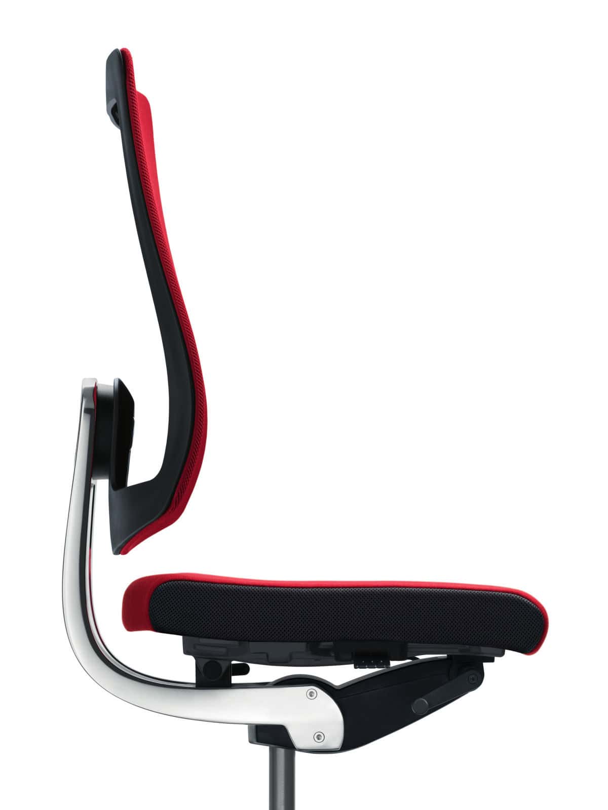 - The dorsokinetic system: hidden behind the black dot, this elastic joint connects the backrest to the backrest support. It is designed in such a way that it is soft and barely noticeable, but creates a clear resistance when the upper body makes strong lateral movements. Conclusion: an exemplary feeling of comfort with full mobility, but always free of insecurity - even for heavy people.