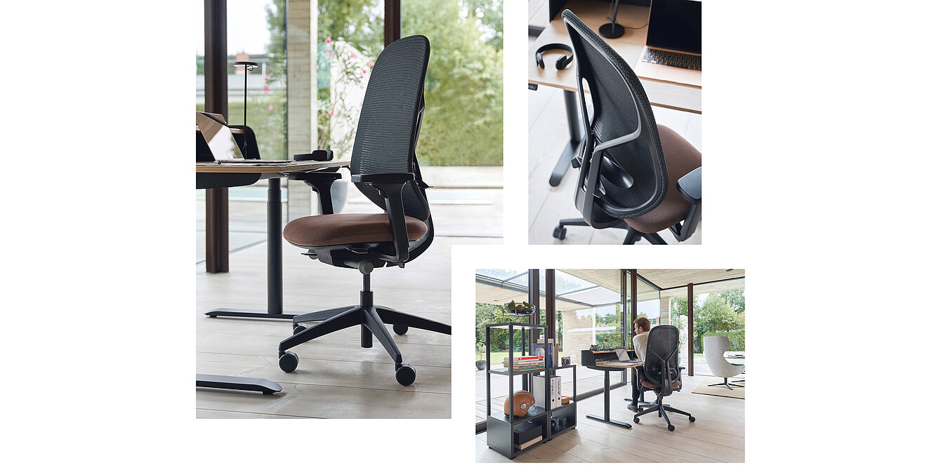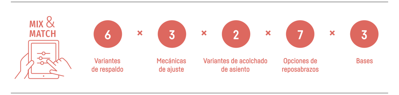 | Mecánica | • Mecánica similar con ajuste automático al peso del usuario y trayectorias de fuerzas equilibradas • Opcionalmente, mecánica Kinetic-Swing: Innovador concepto de movimiento cinemático sin mecánica para usos no territoriales. Comodidad ergonómica e intuitiva, sin necesidad de ajuste por parte del usuario. • Opcionalmente, mecánica similar con ajuste manual y un ángulo de apertura de 18° • Opcionalmente, mecánica similar con ajuste manual e inclinación negativa |