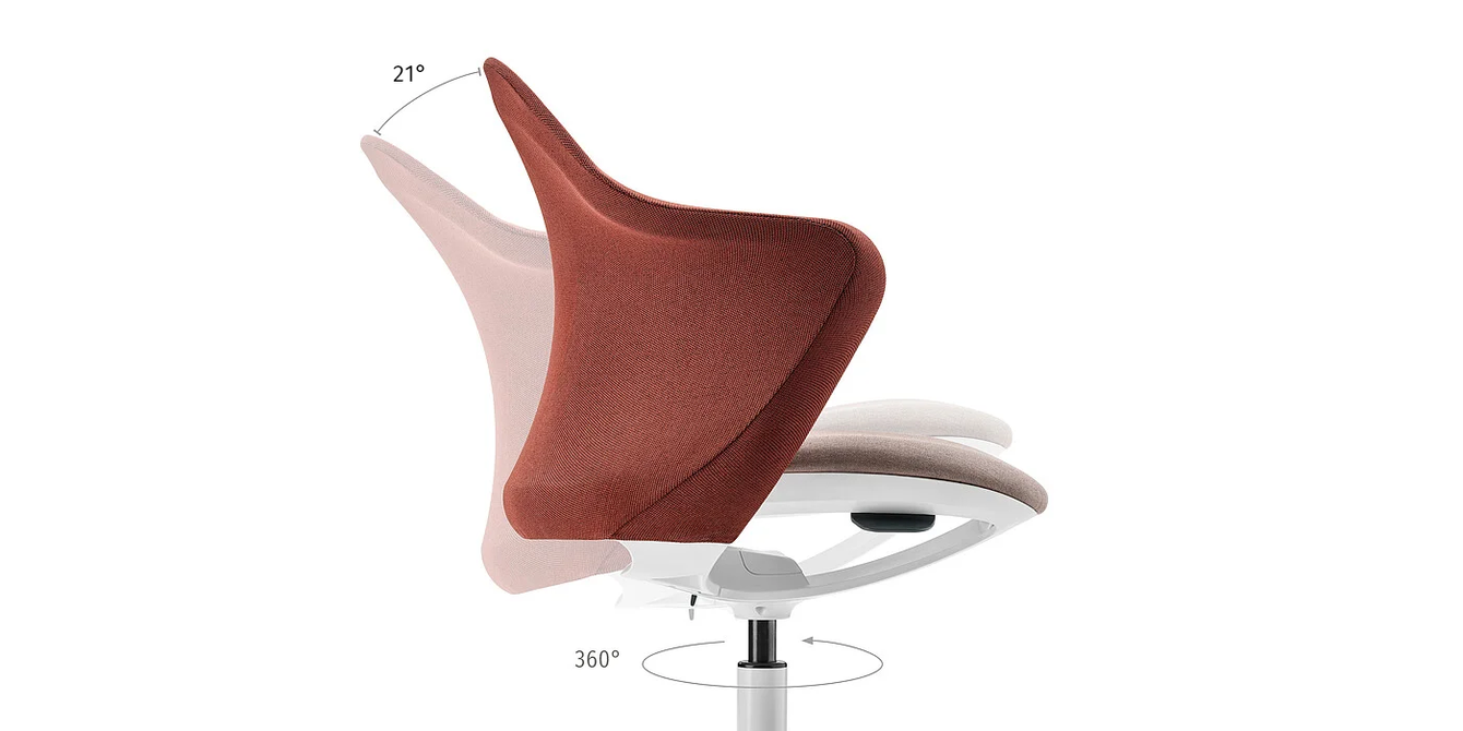Offrant à la fois les atouts d’un siège de travail classique et le confort d’un fauteuil coque, se:flair fait une entrée remarquée au bureau. Compact, sympathique, il a ce petit quelque chose en plus qui en fait un équipier idéal, en toutes circonstances. Le tissu maillé haut de gamme et le bouclé au niveau du dossier ainsi que le capitonnage confortable garantissent un confort optimal. Le mécanisme Kinetic-Swing, l’angle d’ouverture et l’appui-lordose intégré viennent parfaire le siège – pour un bien-être assuré.