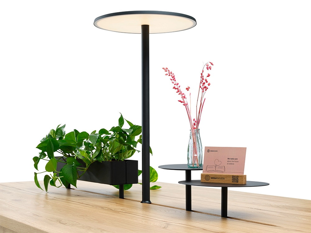 Une échancrure fonctionnelle permet d’installer des accessoires tels que des lampes, des bacs à plantes ou des tablettes