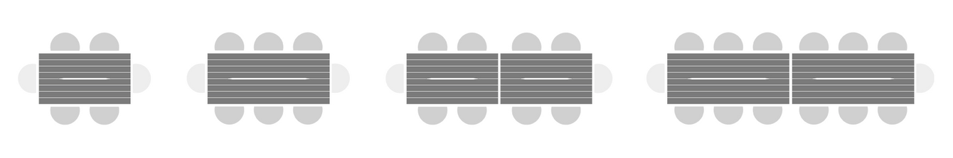 En deux profondeurs et quatre longueurs – Possibilité de configurer une grande table jusqu’à 14 personnes