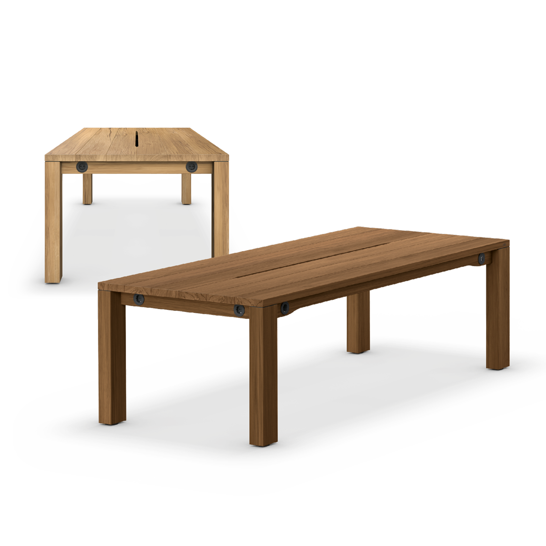 Toute en longueur, cette table renforce l’esprit de groupe et sert de point de ralliement, pour des rencontres spontanées. Sa finition, en placage de haute qualité, se istingue par un caractère très naturel au toucher.